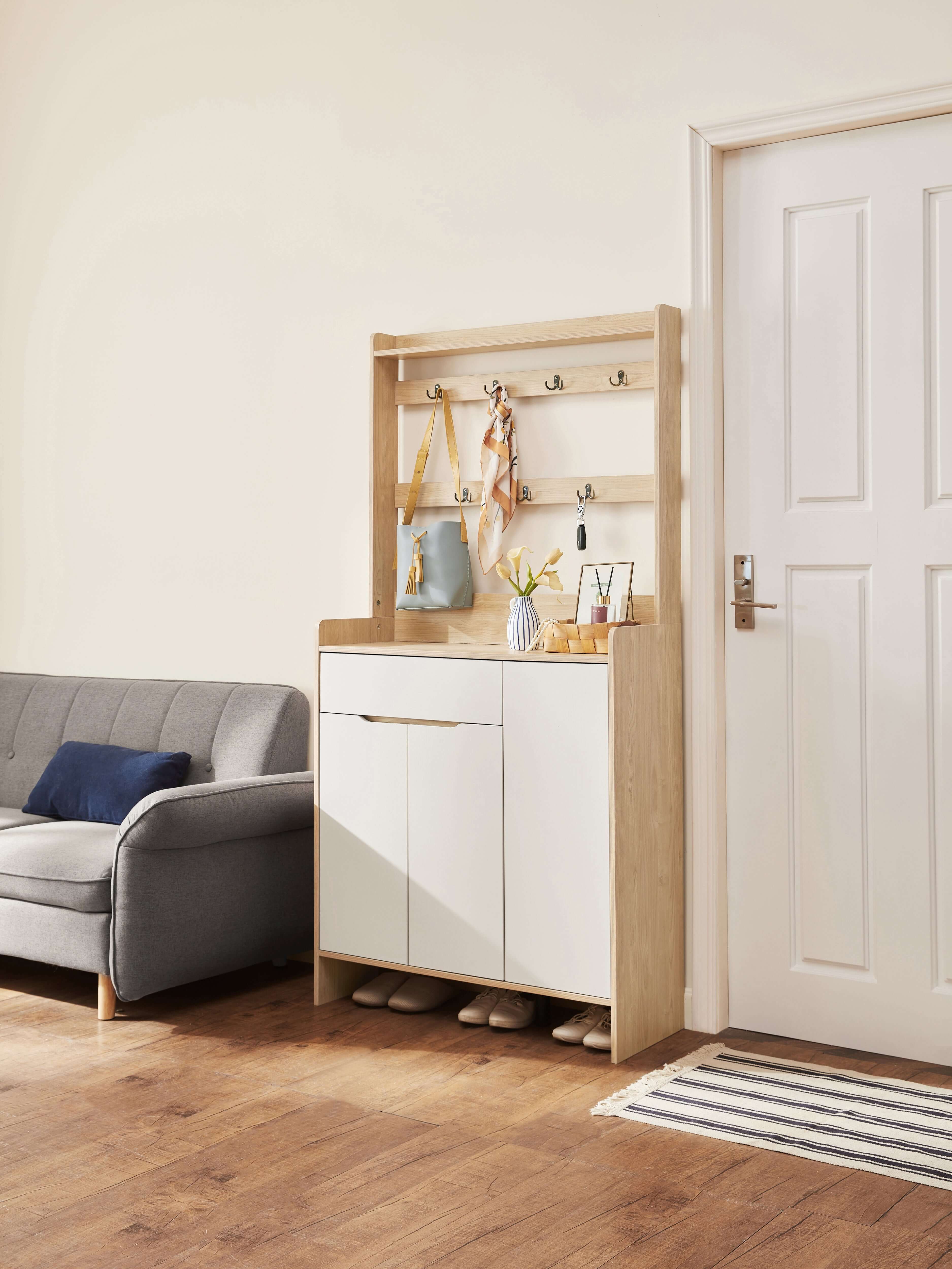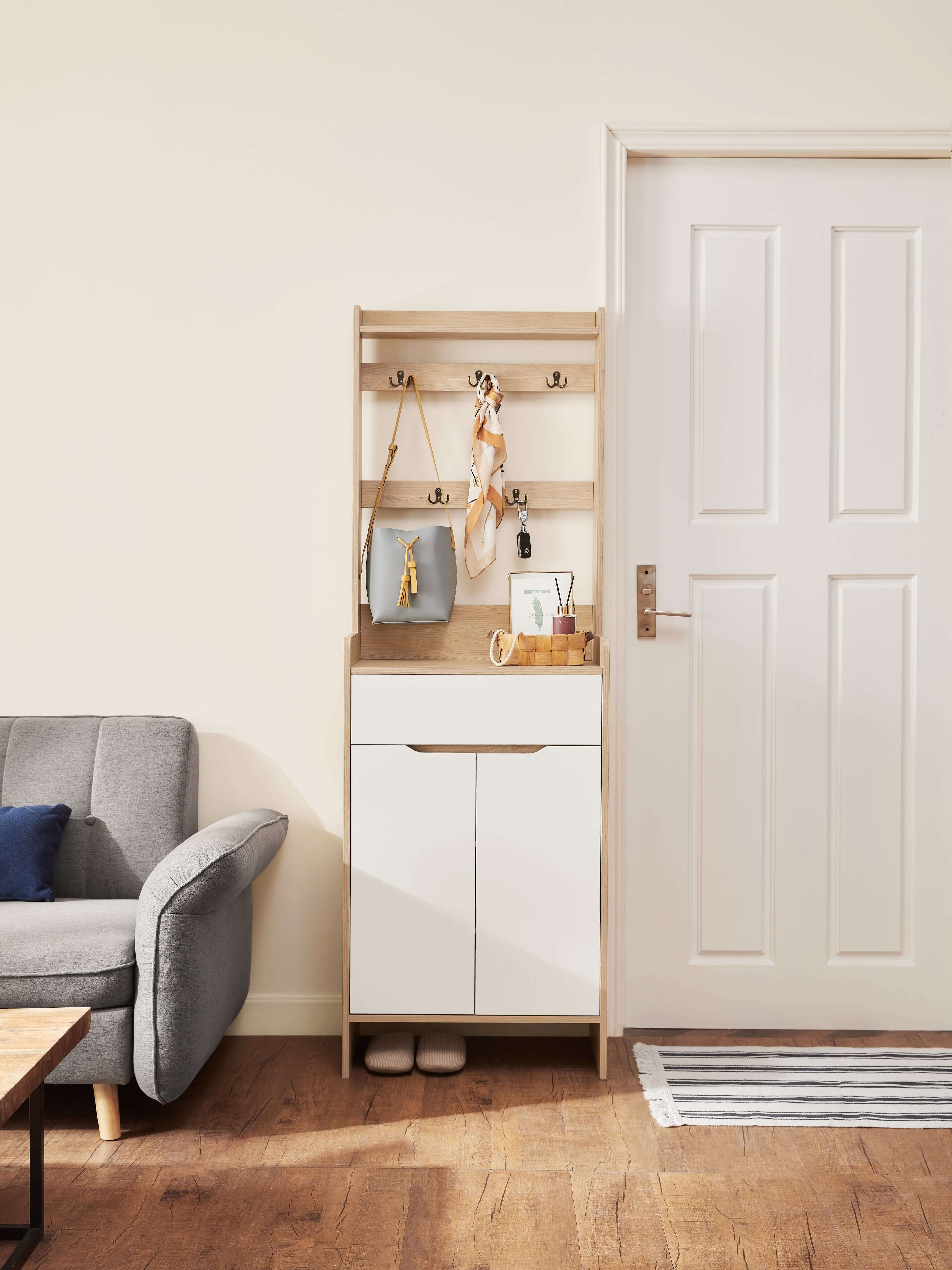 Oak Timber Entryway Storage/Shoe Cabinet with Bag Hanger/60CM/90CM